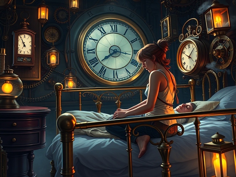 Шум заводов, клубы пара и запах масла заполнили воздух города, когда Жаклин проснулась в доме Луиса. Тонкие лучи утреннего солнца пробивались сквозь занавески, освещая бронзовые механизмы, которые украшали комнату. Но что-то было не так. Она повернулась и замерла: Луис лежал мёртвый, неподвижный, рядом с ней в постели. Его лицо было бледным, а глаза оставались открытыми, как если бы смерть пришла слишком быстро.