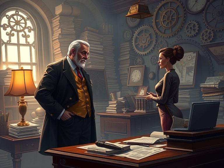 В кабинете Ежьена, опытного адвоката с многолетним стажем, Жаклин снова почувствовала себя в центре игры, в которой она ничего не знала, но должна была играть. Механический помощник Ежьена щёлкал шестерёнками, занося новые данные в файлы. Ежьен, с холодным взглядом и сдержанной улыбкой, выдвинул свою версию: «Её убили, чтобы не дать ему унаследовать бизнес-империю отца, старика, который скоро уйдёт из жизни. Эта компания — ключ к огромной силе. Нам нужно действовать быстро.»